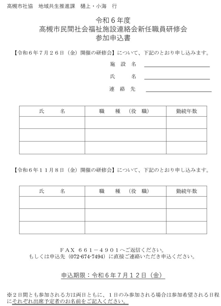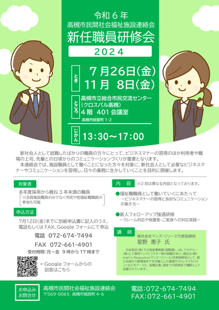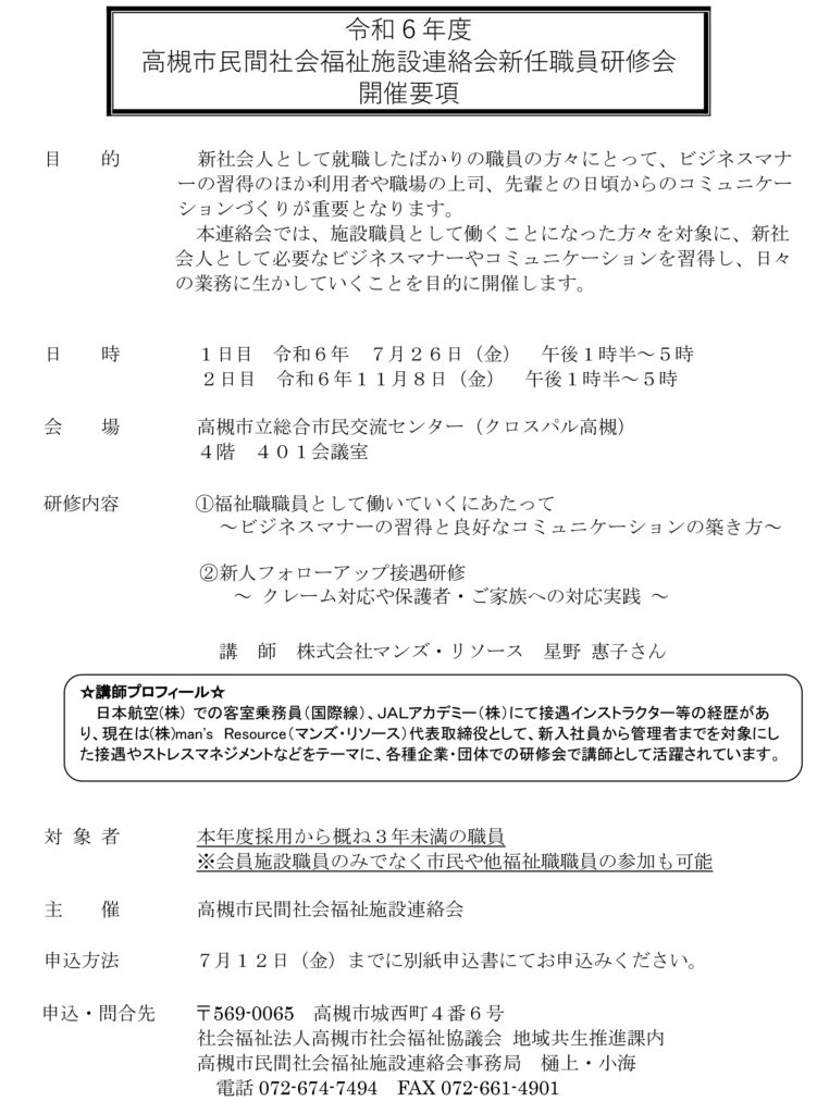 高槻市民間社会福祉施設連絡会では、施設職員のスキルアップのための研修会を行っています。今後、当連絡会に加入したい!など、ございましたらご連絡お待ちしております。
