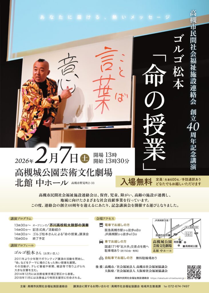 高槻市民間社会福祉施設連絡会 創立40周年記念式典・記念講演を開催します!